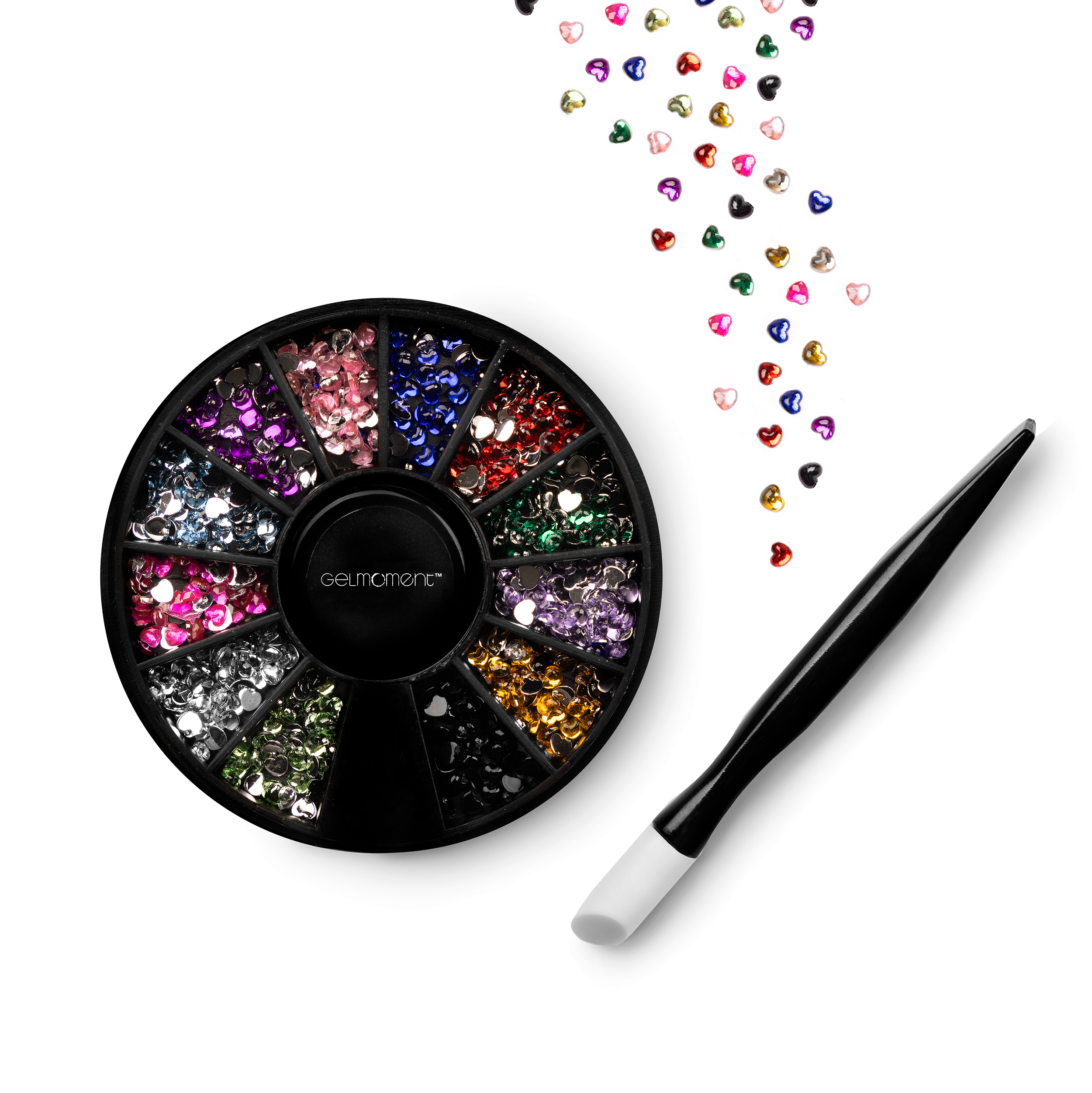 Heart mini jewels comes with 12 colours and an applicator stick, and comes packaged in a GelMoment organza sachet.